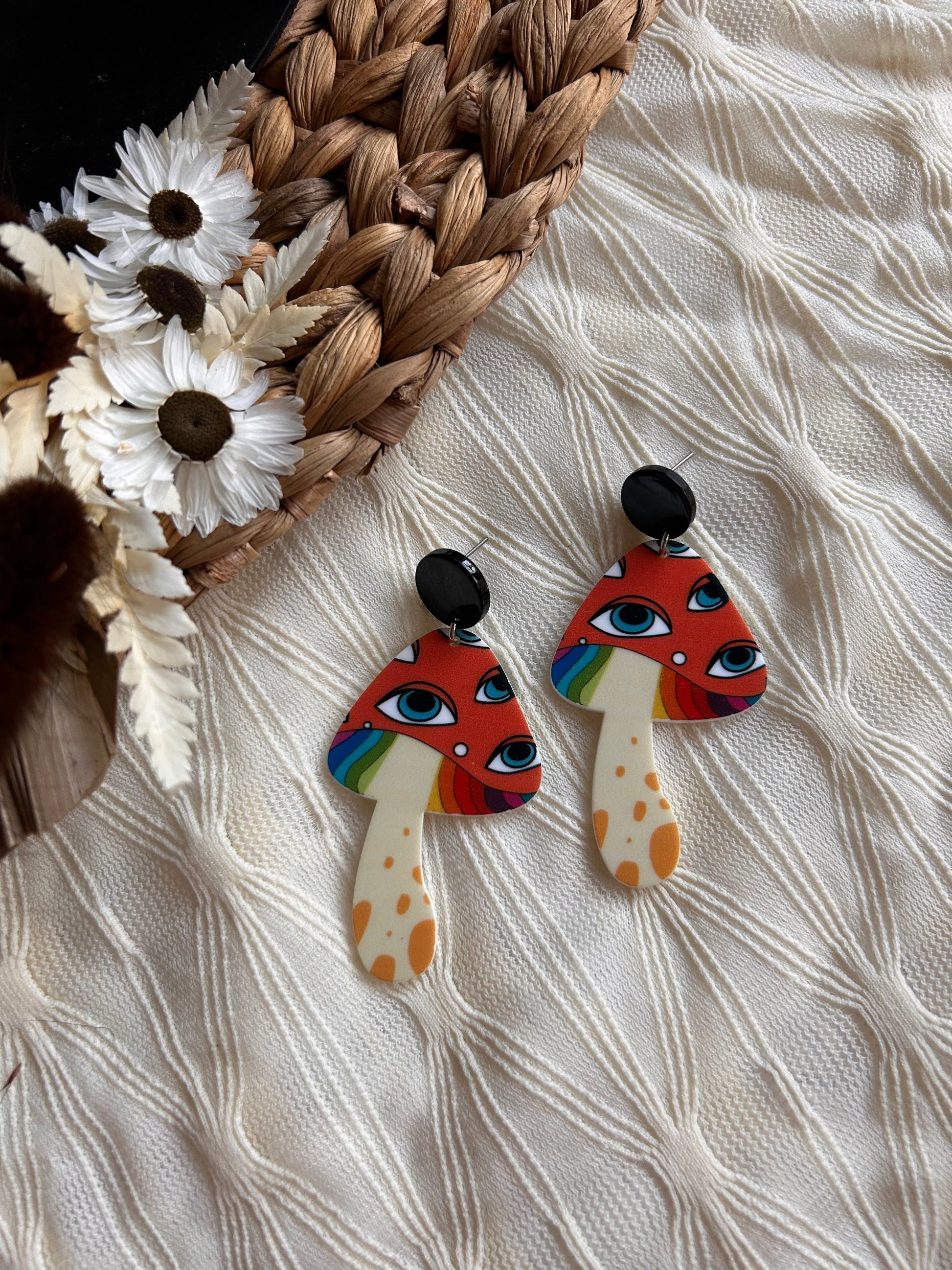 Eyes on mushrooms earrings